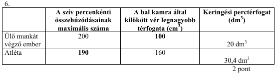 Ha a vizsgázó hibás előfeltevésből (a gátlásból) indult ki, de a továbbiakban az oksági összefüggéseket helyesen elemezte, a gondolatmenet első 1-1 pontját leszámítva értékelhető a válasza, ami maximálisan 4+2 = 6 pont.